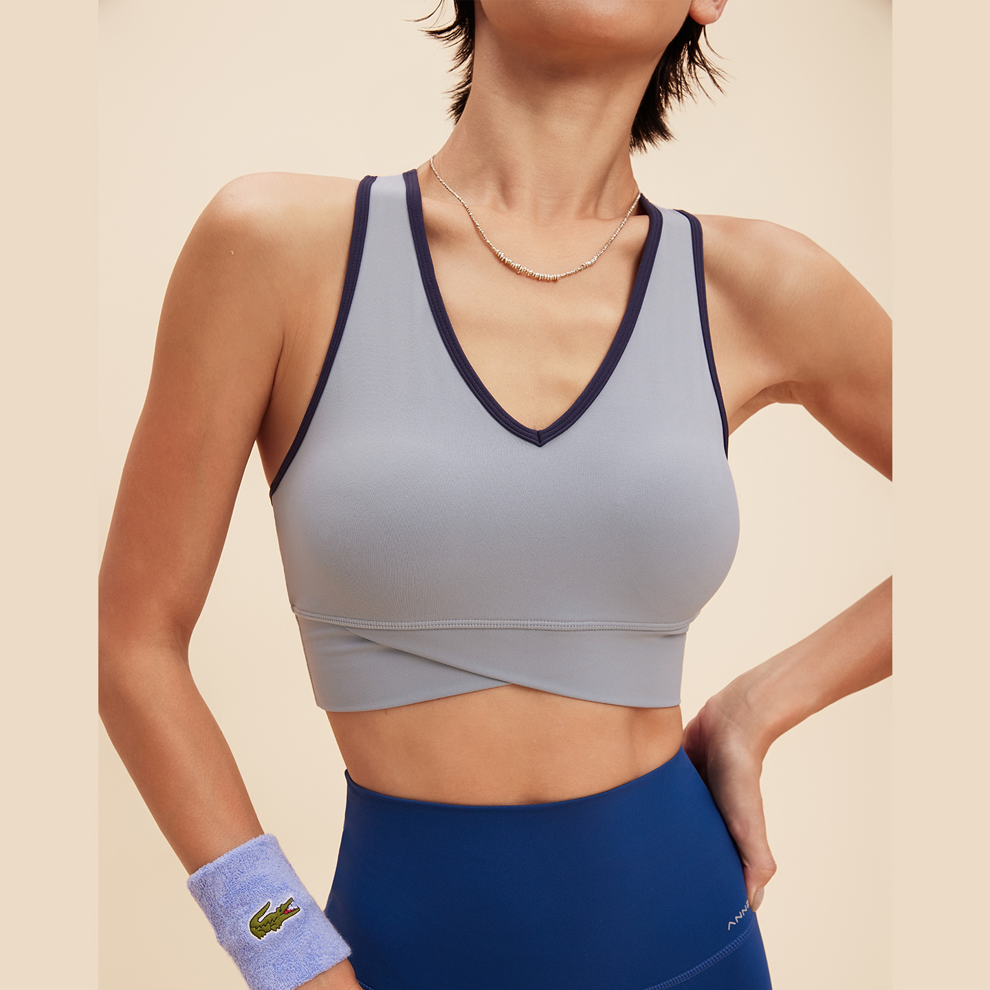 annerun撞色运动内衣女外穿跑步防震美背背心瑜伽文胸聚拢健身服