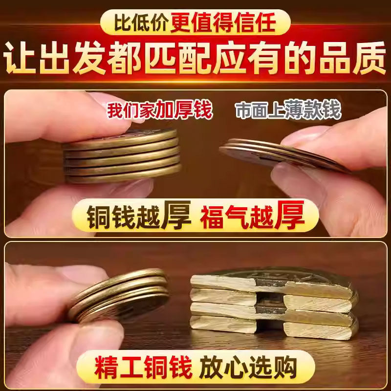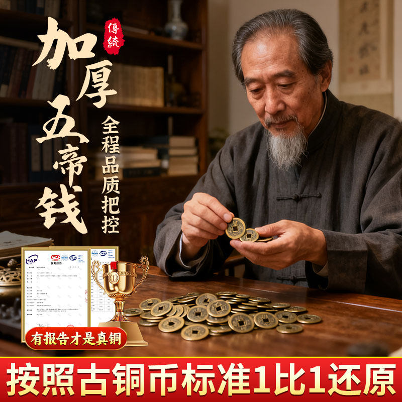 五帝钱铜钱纯黄铜压门槛散康熙顺治乾隆通宝古钱币加厚纯铜散钱币