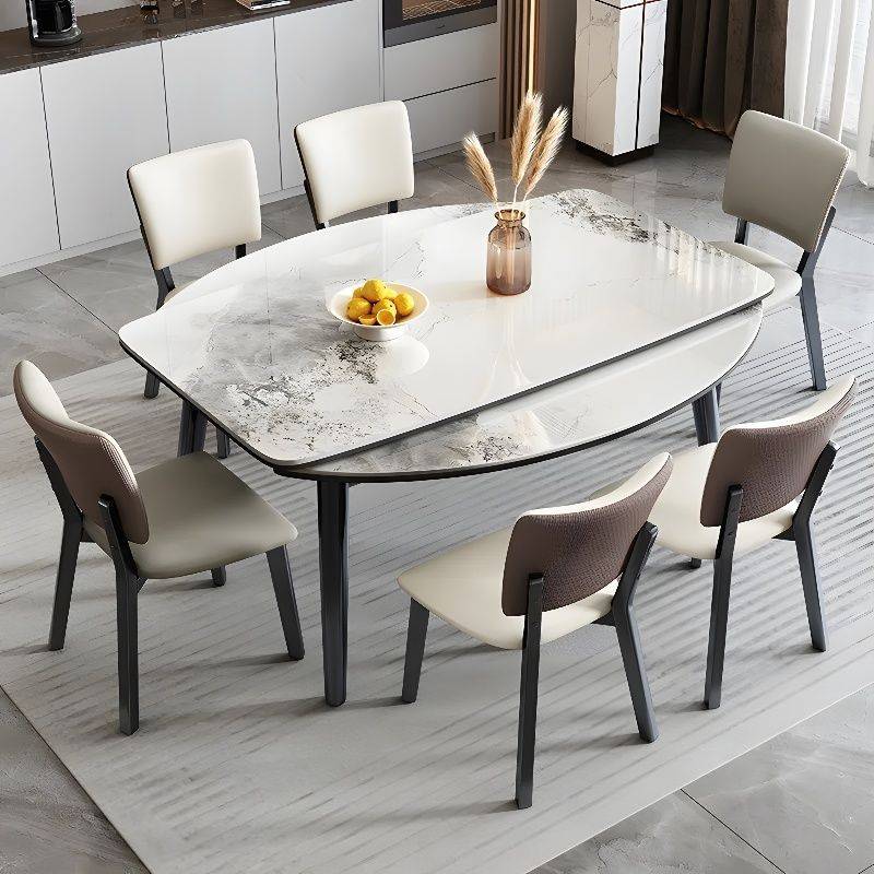 轻奢岩板餐桌家用小户型现代简约伸缩折叠饭桌可变圆桌餐桌椅组合