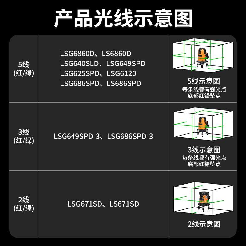 莱赛水平仪5线LSG686SPD高精度强光细线2线红外线自动打线投线仪