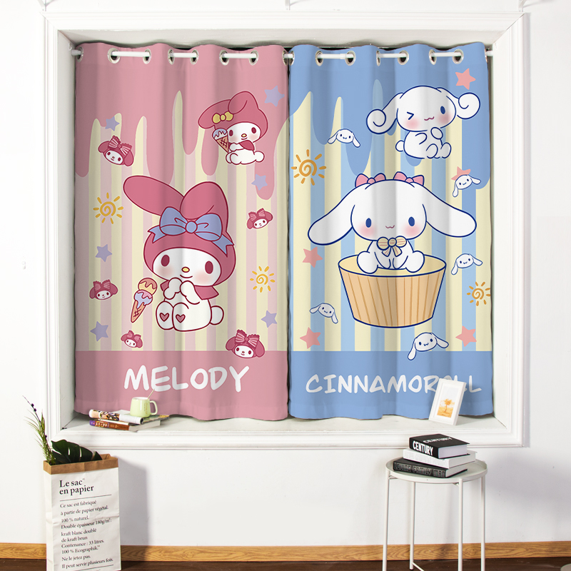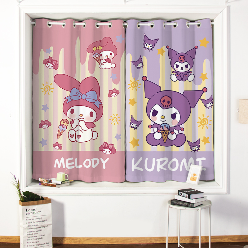 卡通窗帘卧室女生防晒遮光布新加厚儿童房免打孔安装飘窗短帘学生