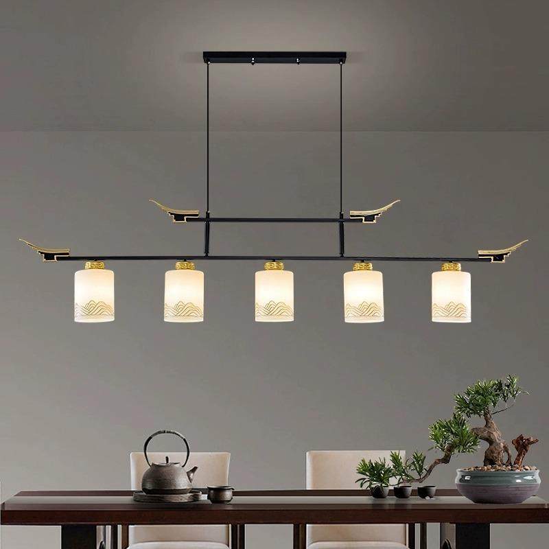 新中式一字餐厅吊灯中国风茶室办公室前台吧台灯三头长条茶台吊灯