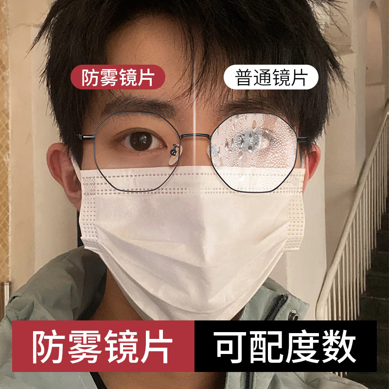 乐申防雾近视眼镜框男款可配度数纯钛防蓝光配冬天口罩不起雾眼睛