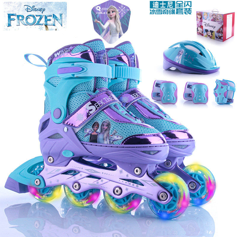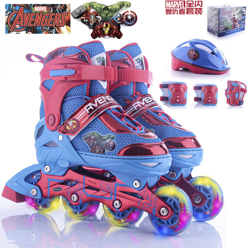 迪士尼溜冰鞋冰雪奇缘漫威蜘蛛侠复仇者联盟儿童全闪儿童轮滑鞋