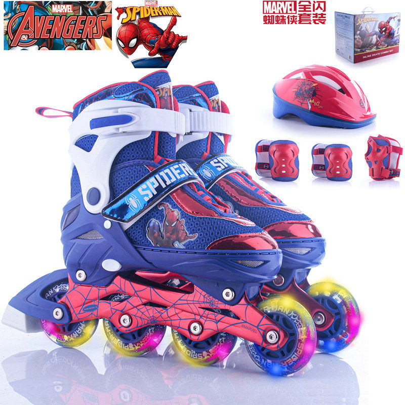 迪士尼溜冰鞋全闪光蜘蛛侠轮滑鞋