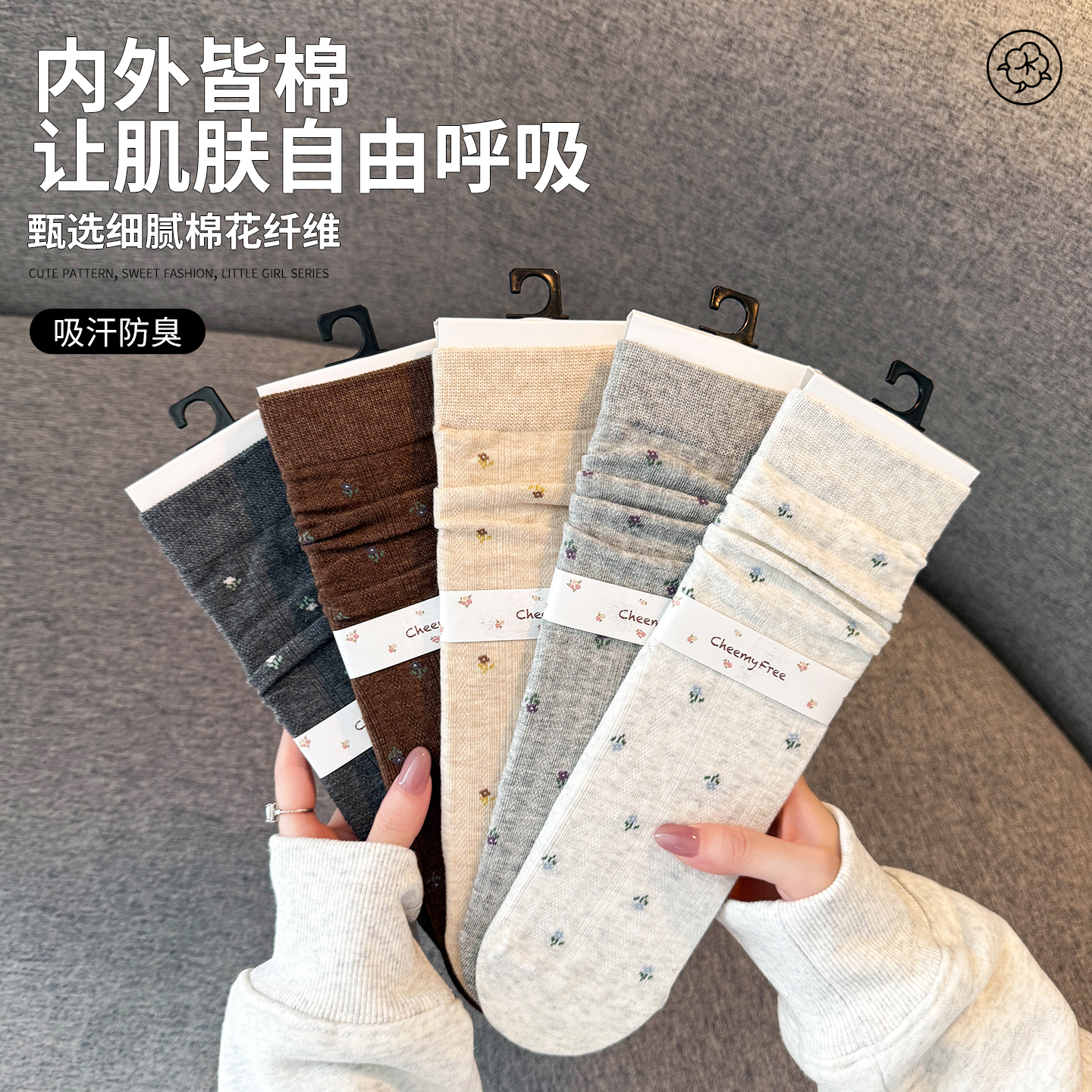 袜子女秋季中筒袜2025新款爆款纯棉防臭女款白色堆堆袜长袜春秋款