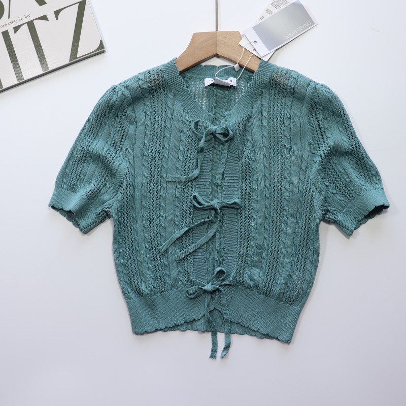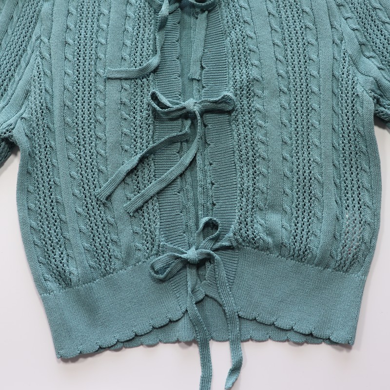原单 小码女装法式圆领系带开衫女夏季新款设计感短款针织衫上衣