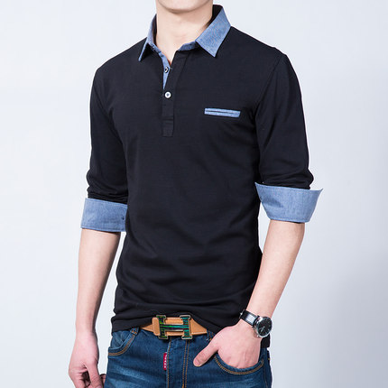 秋冬装打底衫男外穿纯棉宽松长袖t恤秋衣上衣有翻领polo衫加大码