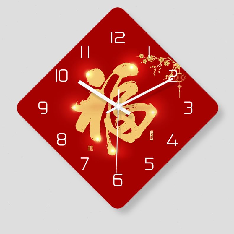 石英钟新款2023挂表静音装饰新中式福字简约客厅挂钟创意时钟福字