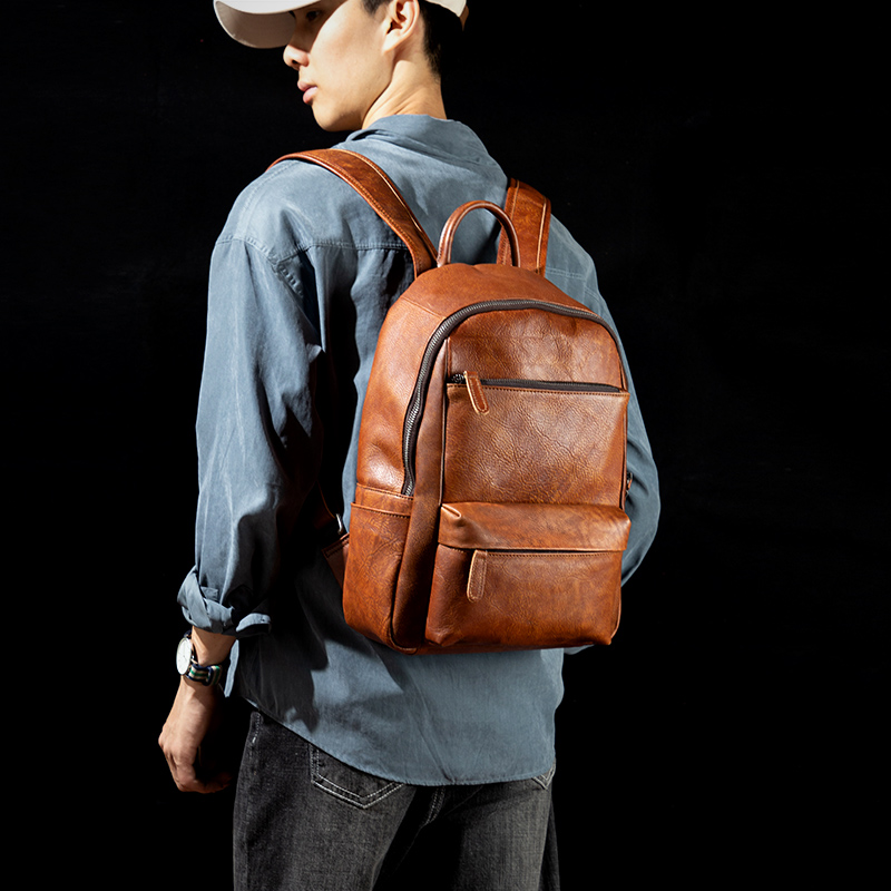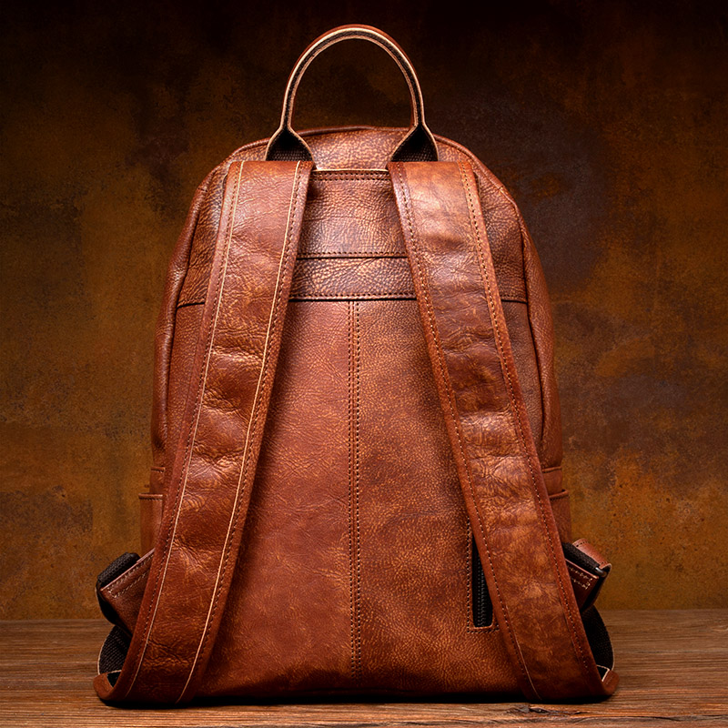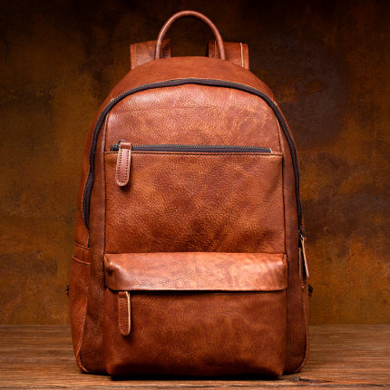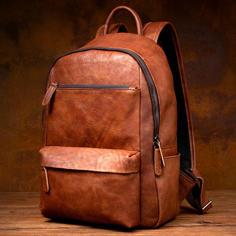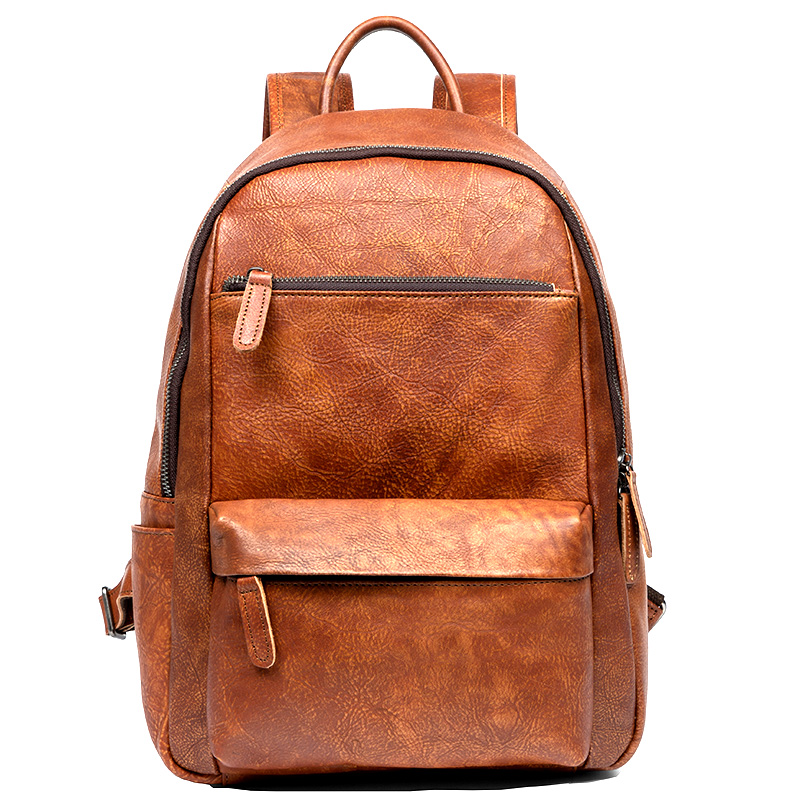 慢时光复古手工擦色真皮背包男头层植鞣牛皮双肩包女休闲皮书包潮
