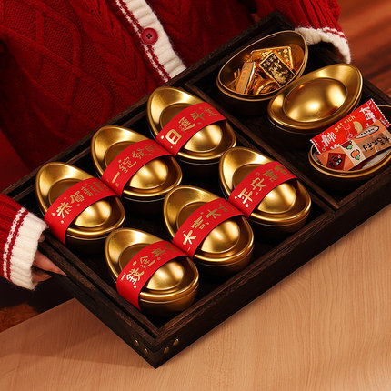 26新年金元宝铁盒礼盒包装糕巧克力糖果饼干礼品盒装饰铁罐聚宝盆