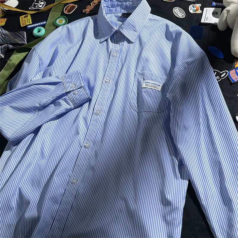 蓝条纹衬衫男高级感休闲秋季蓝白长袖衬衫打底蓝色新款浅蓝内搭女