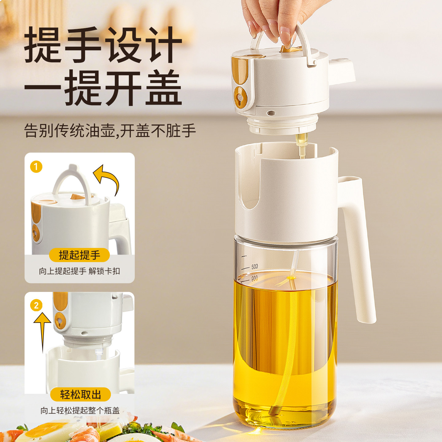 日本泰福高喷倒两用油壶家用食品级玻璃油瓶不挂油不漏油喷油壶