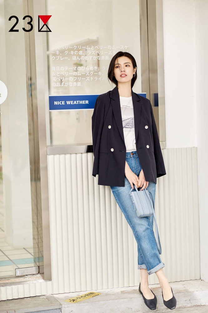 23区日系春季通勤职业薄款棉混纺双排扣西装休闲西服上衣商场同款