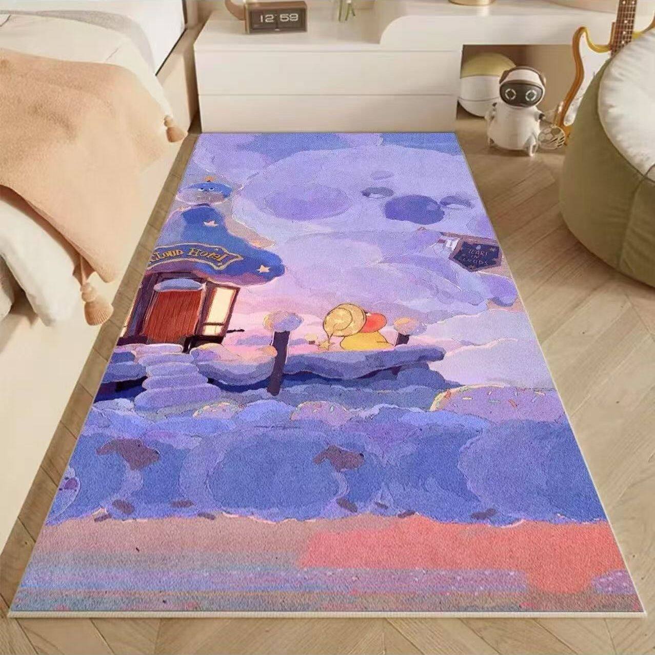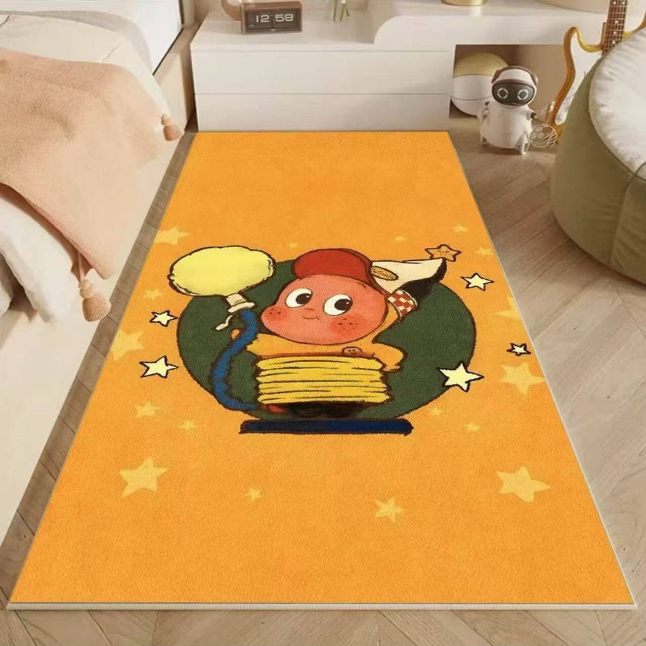 卧室床边地毯卡通星星人房间客厅儿童毯免打理飘窗毯卡通多巴胺