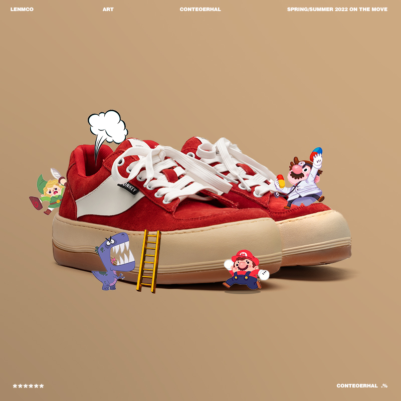 多嘴驴Donkey厚底板鞋女款原创小众红色大头帆布鞋秋季增高鞋子男
