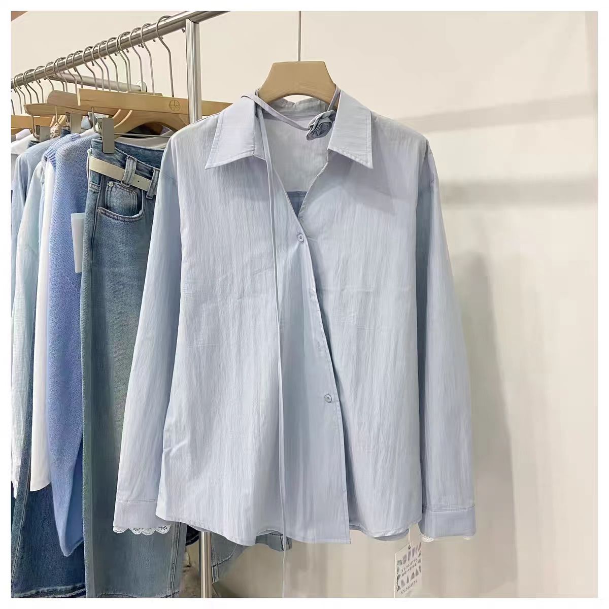 2025春季新款时尚百搭宽松气质衬衫女韩系设计感系带长袖上衣8802