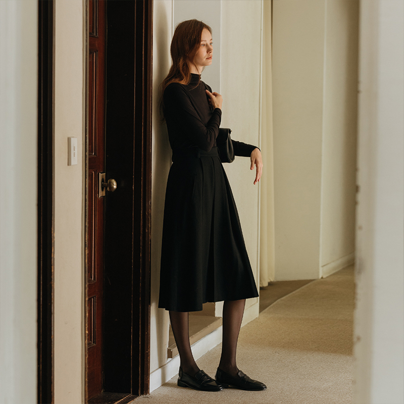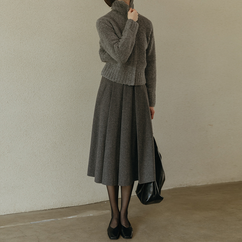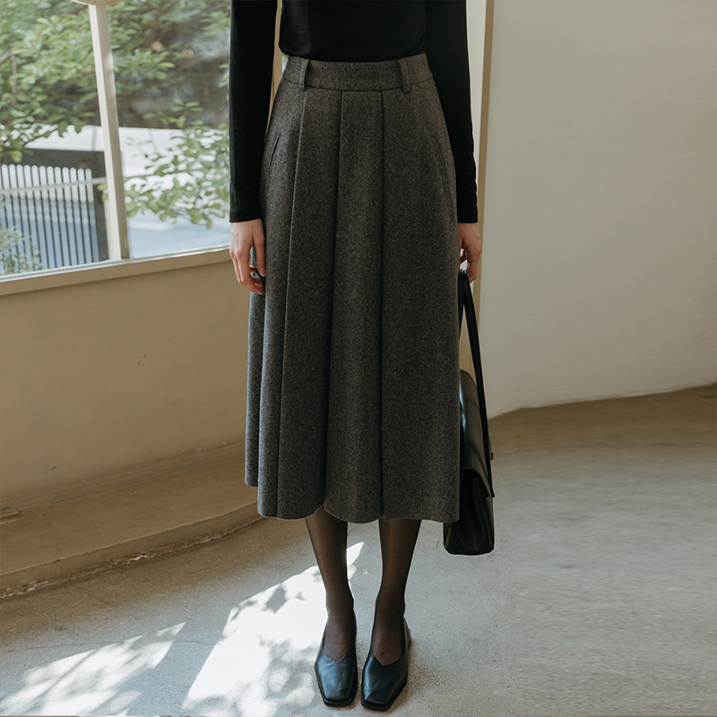 毛呢半身裙女2025秋冬新款高腰中长款百褶伞裙小个子A字西装裙子