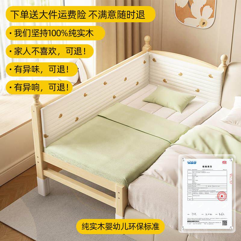儿童拼接床婴儿床实木拼接大床加宽床边床宝宝小床可定制加床拼床