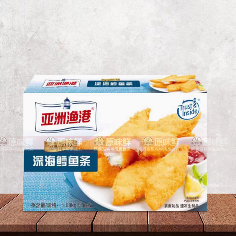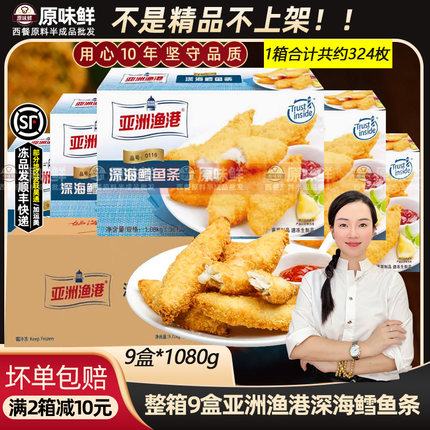 整箱亚洲渔港深海鳕鱼条冷冻 鳕鱼排海鲜油炸鳕鱼排1080克*9盒
