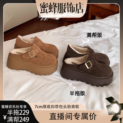 【蜜蜂欢乐社】苏茵茵长高7cm厚底扣带包头羊毛毛勃肯鞋女棉鞋