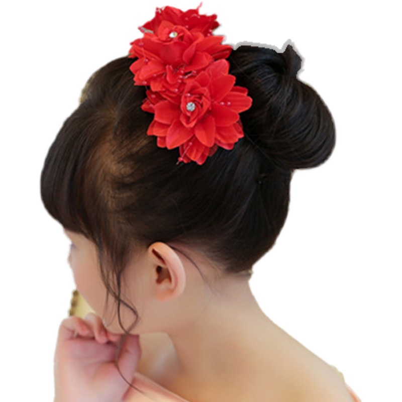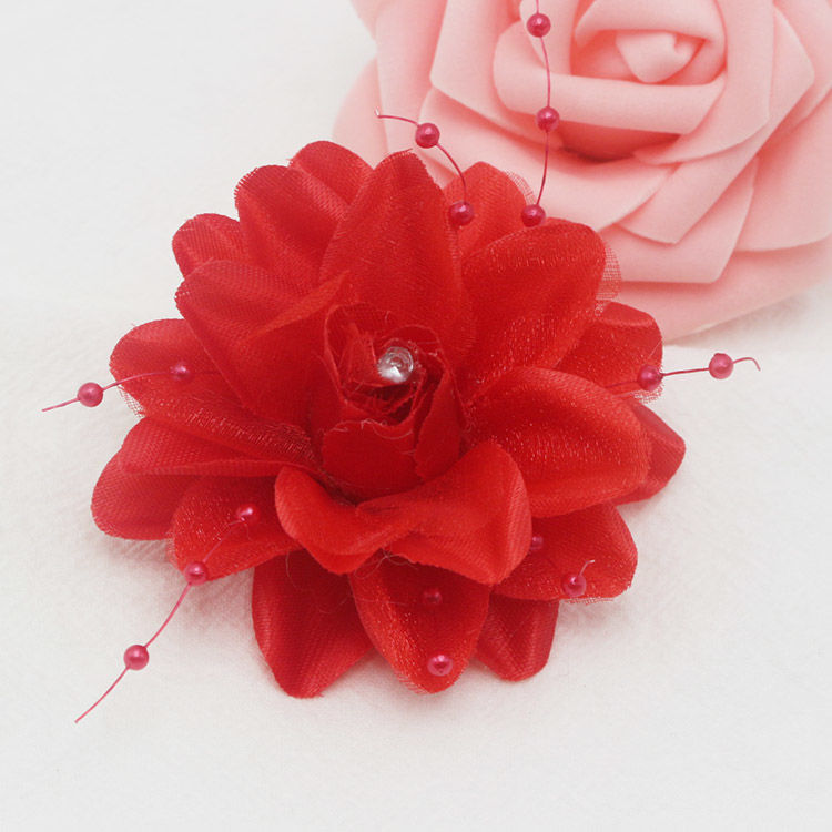 新娘头饰红色头花儿童演出盘发饰品婚纱礼服配饰发夹珍珠小花发饰