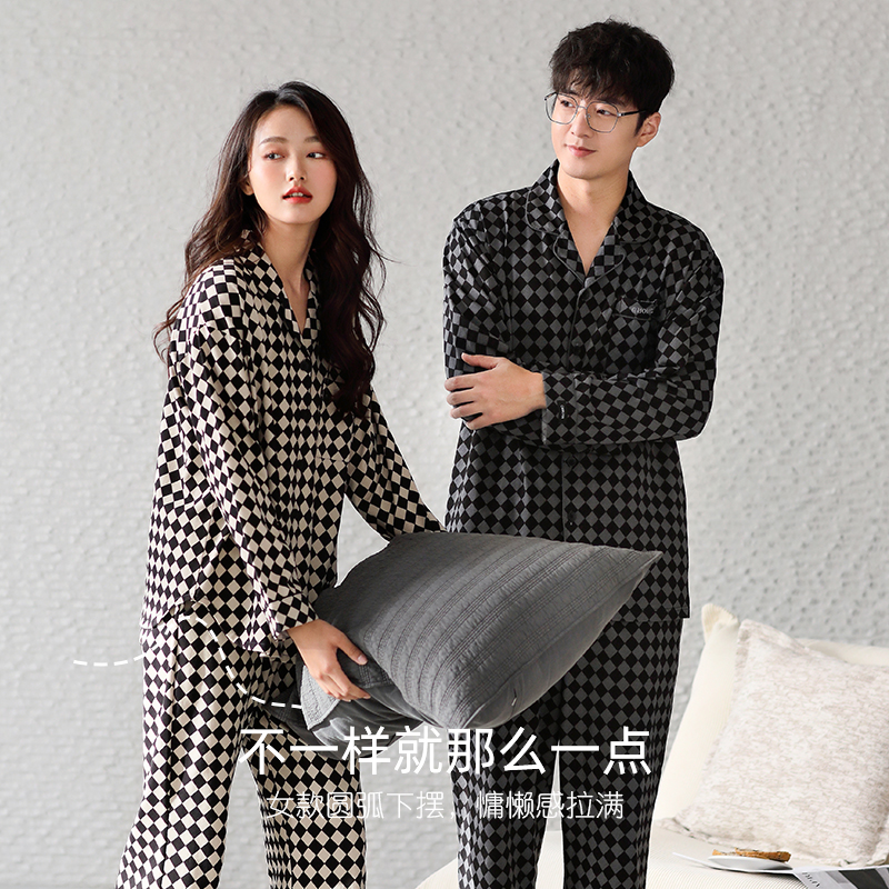 2023新款情侣睡衣女款春秋款秋季纯棉长袖男士家居服男款大码套装