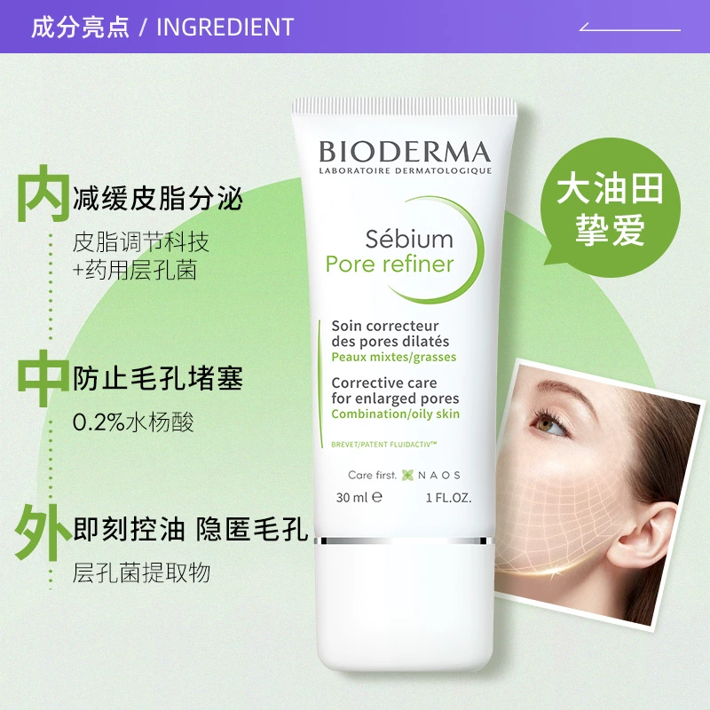 法国贝德玛净妍控油净颜精华乳液保湿官方正品修复敏感肌可用