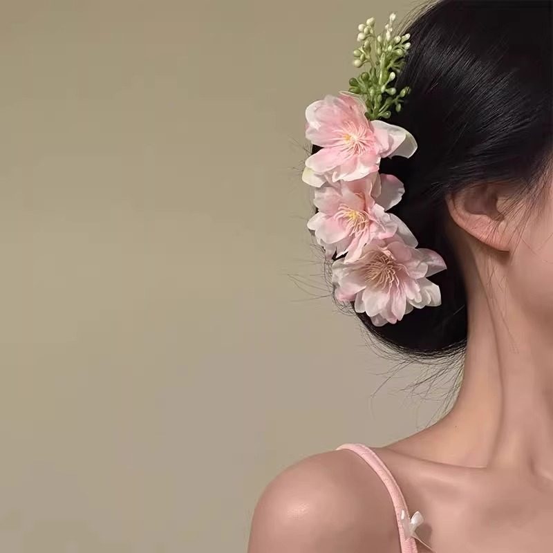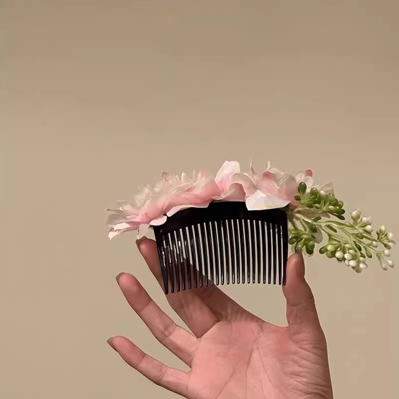 新中式仿真花朵发梳女2025新款高级感盘发插梳头饰氛围感拍照饰品