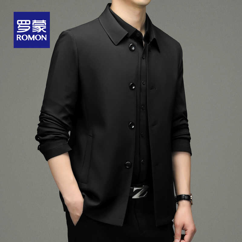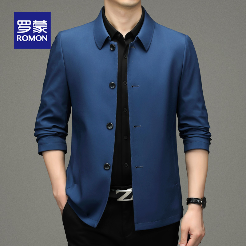 罗蒙2025男士新款中年翻领秋装纯色外套商务休闲男装公务员夹克男