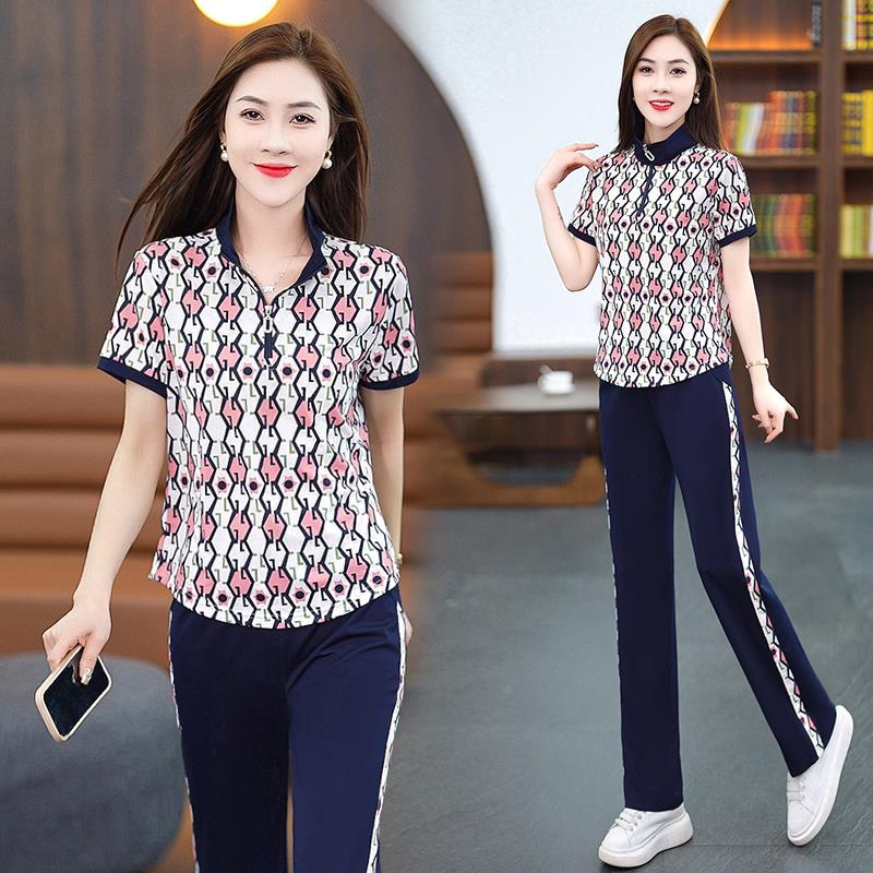 夏季女新款套装韩版时尚花宽松显龄瘦洋77729222气减印两件套装