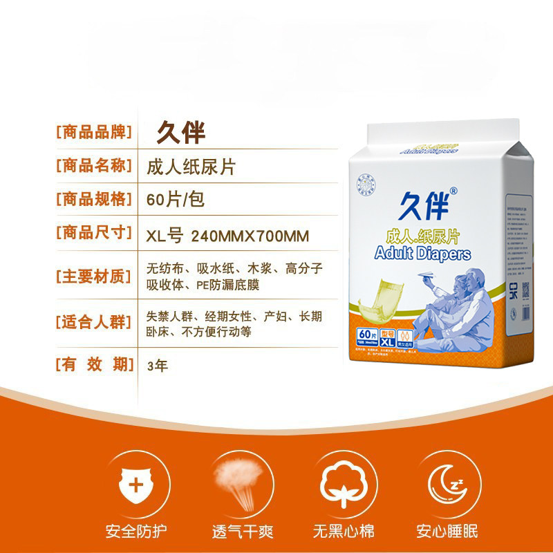 久伴成人纸尿片 老人尿不湿一次性老年人护理尿片u型60片经济装XL