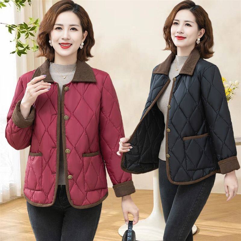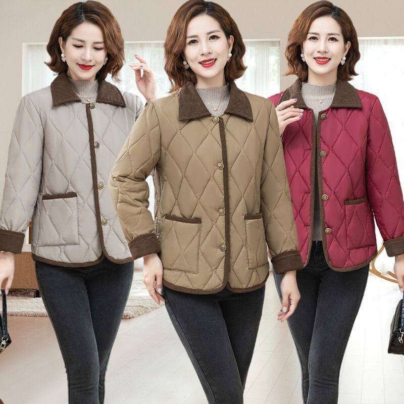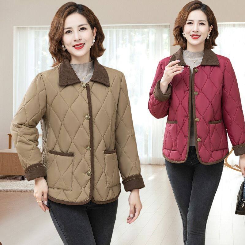 中老年人女春秋轻薄小棉衣60岁妈妈装秋冬季翻领棉袄洋气百搭外套