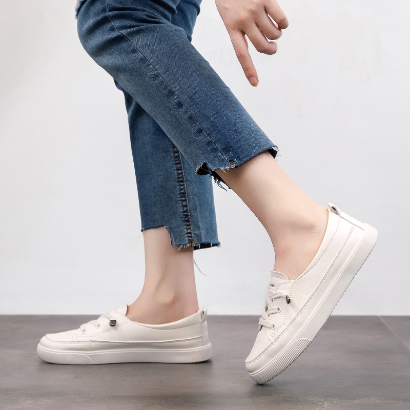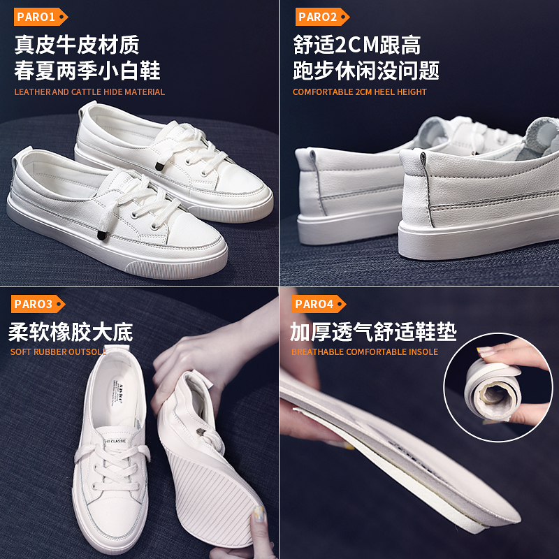 真皮小白鞋女2025新款春季百搭一脚蹬软底运动休闲鞋浅口厚底板鞋