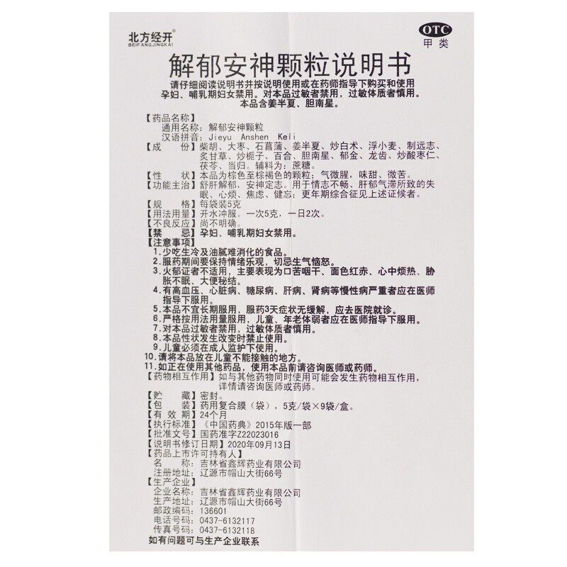 【北方经开】解郁安神颗粒5g*9袋/盒