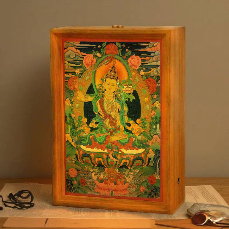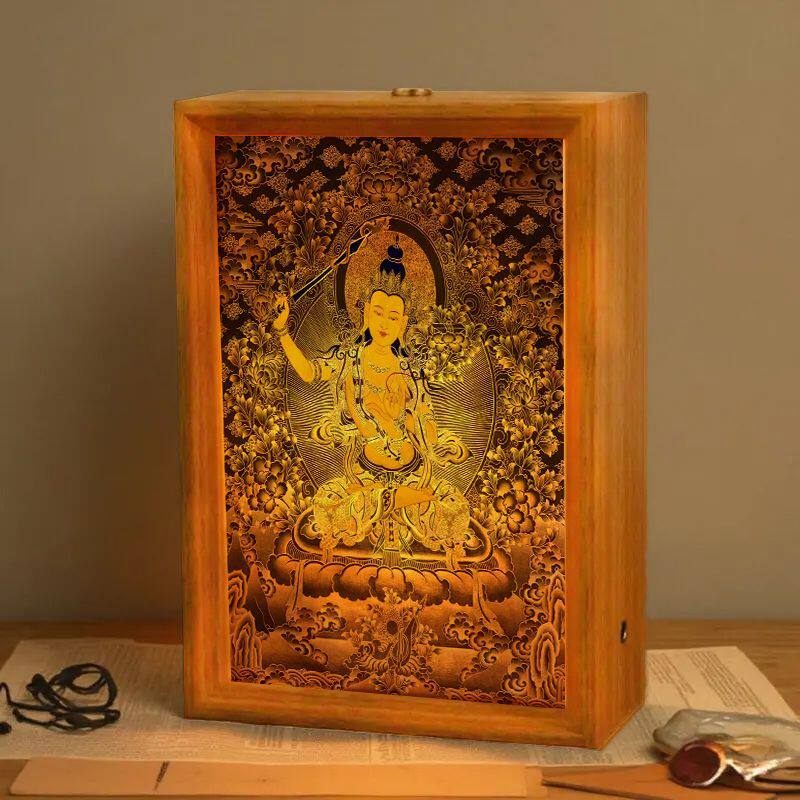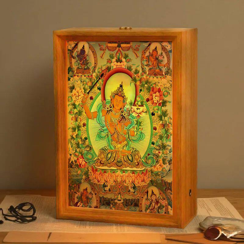 唐卡摆台藏族财神灯光画桌面供俸相框保佑招财氛围灯家庭和睦成品
