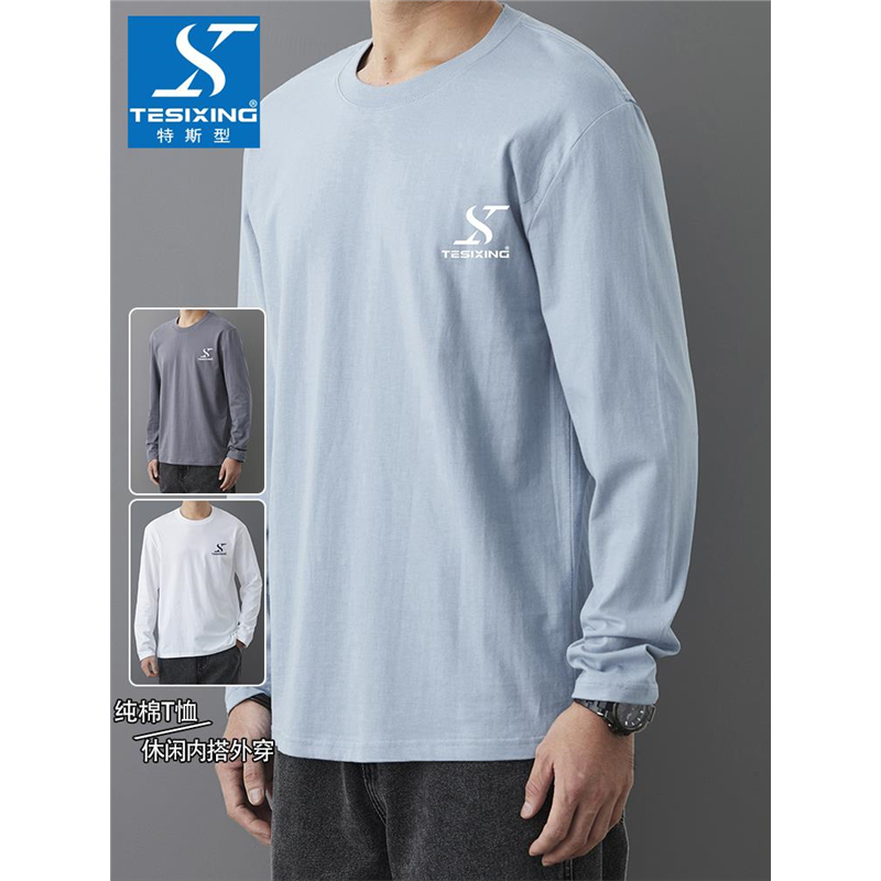 以纯YISHION长袖t恤男士纯棉内搭打底衫春季潮流男生宽松印花上衣