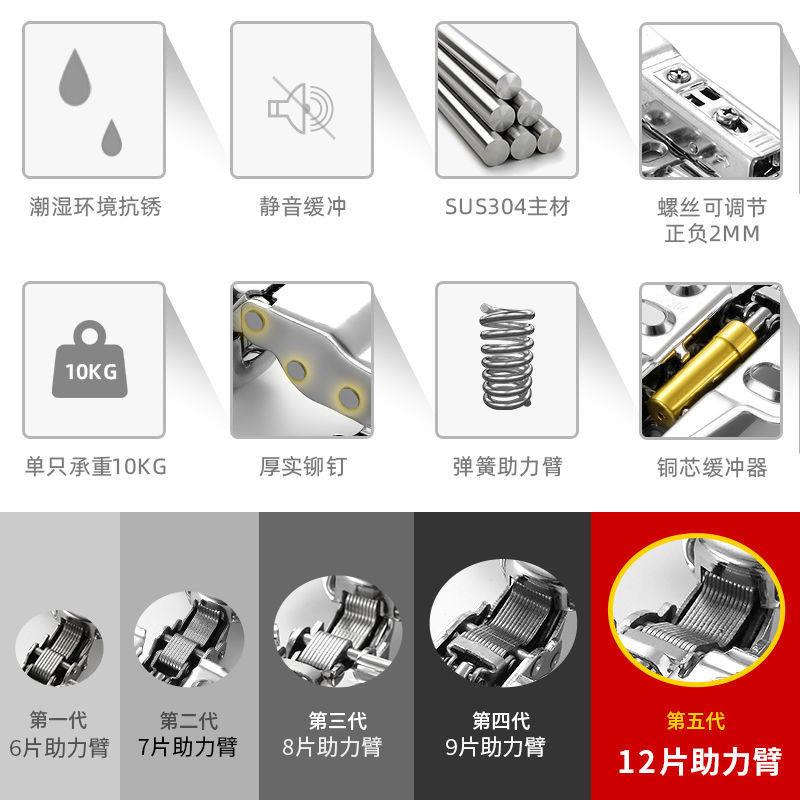 【铜芯】304不锈钢缓冲阻尼铰链橱柜门中弯半盖折叠液压飞机合页