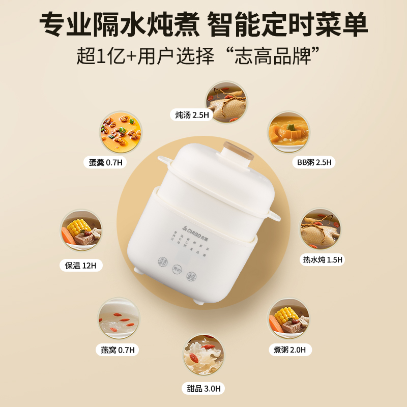 志高电炖锅炖盅隔水炖家用婴儿辅食煮粥锅燕窝陶瓷煲汤炖汤烹饪机