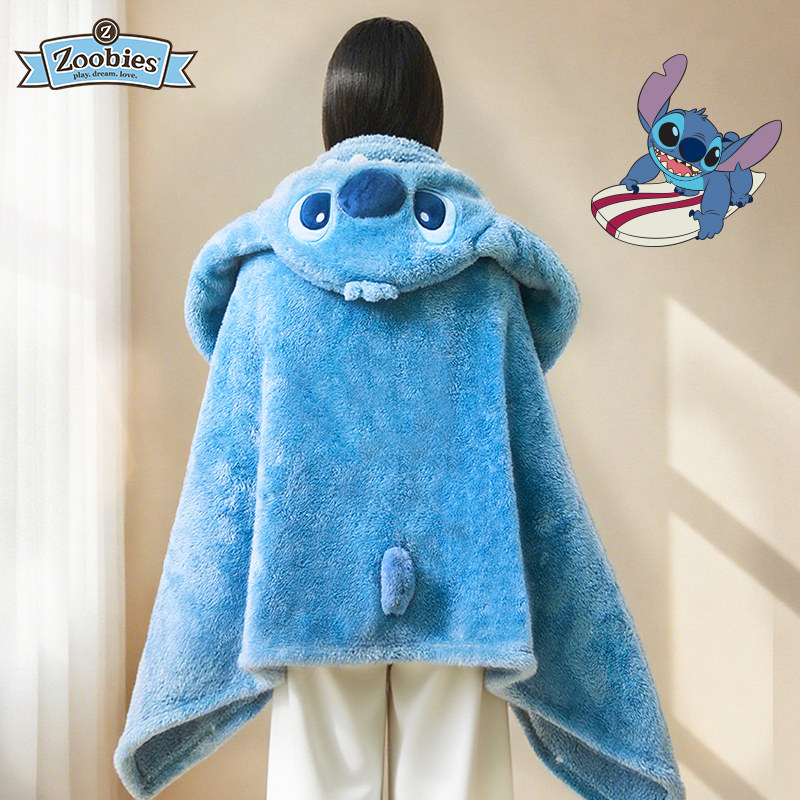 zoobies迪士尼史迪仔披肩斗篷披风毛毯子女冬加厚办公室午睡毯