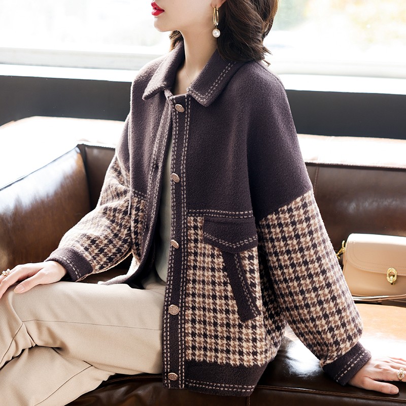 年轻妈妈春装毛呢外套2025新款中年女短款针织上衣中老年开衫外衣