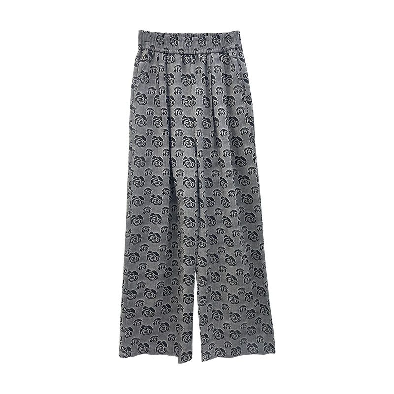 复古国风提花阔腿裤女春夏宽松显瘦民族风玫瑰花棉麻碎花直筒长裤