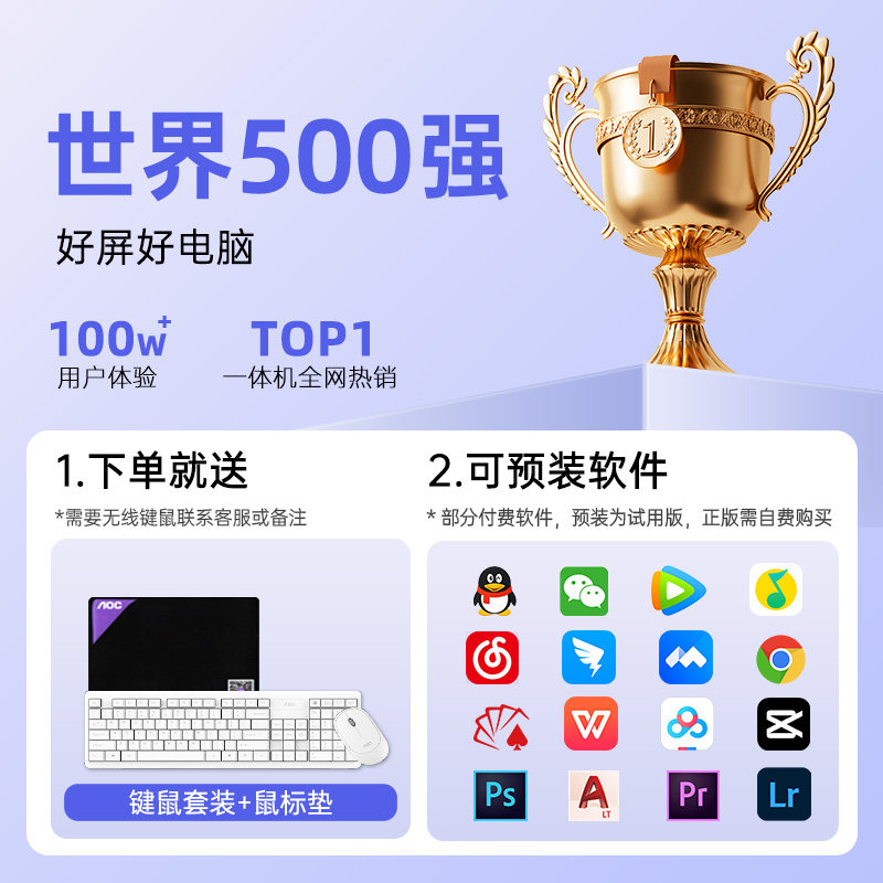 【国补】AOC品牌一体机电脑24英寸27办公家用壁挂高配一体式全套整机台式机苹果华为华硕戴尔联想2025新款