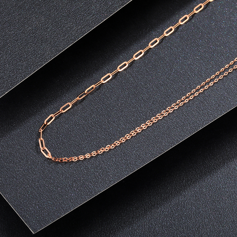 18K金项链女O字链AB链锁骨链黄金玫瑰金彩金双层AB双链子素链加长