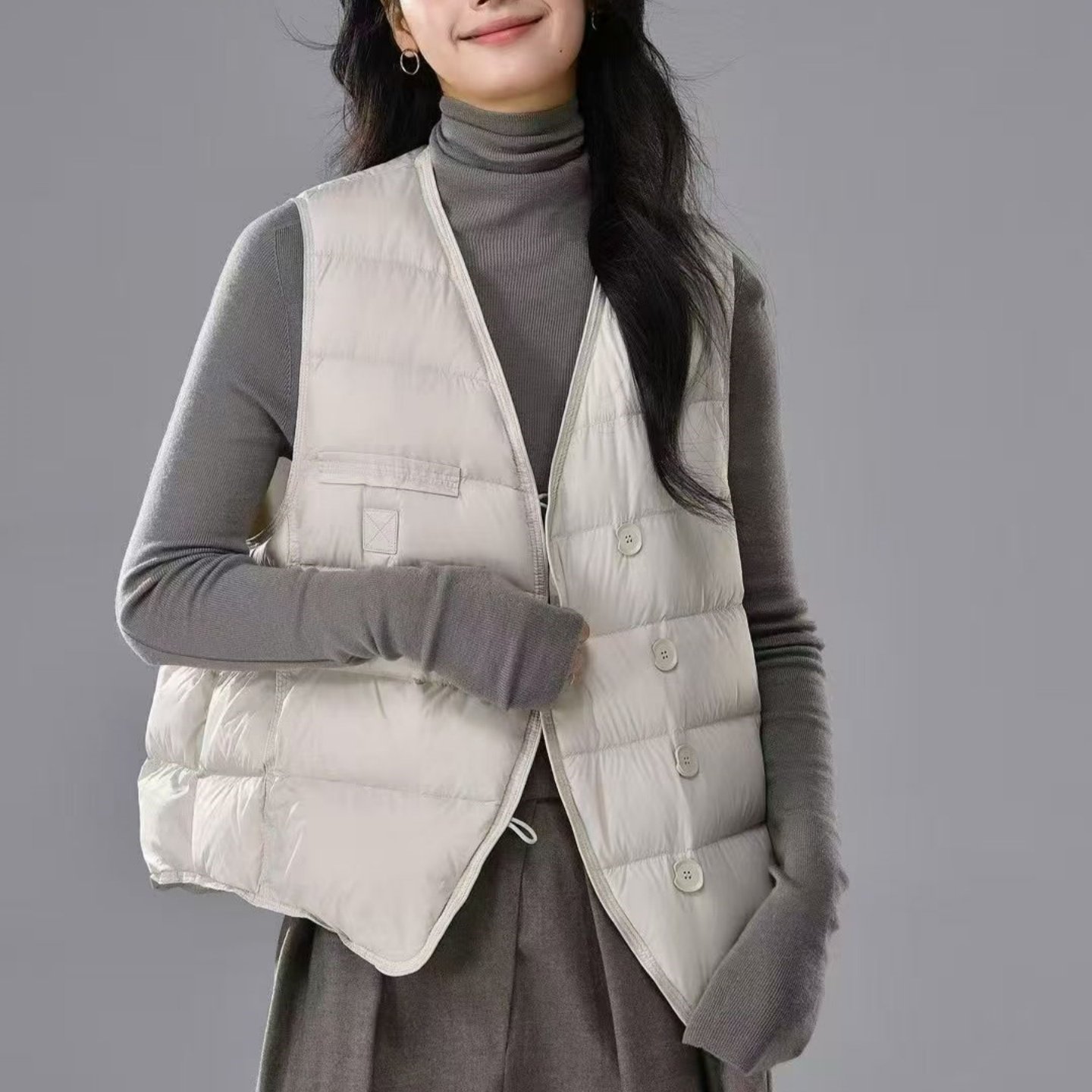 韩版时尚V领无袖羽绒马甲女2025秋冬新款宽松休闲百搭背心上衣潮