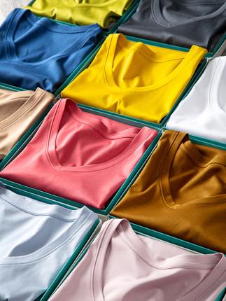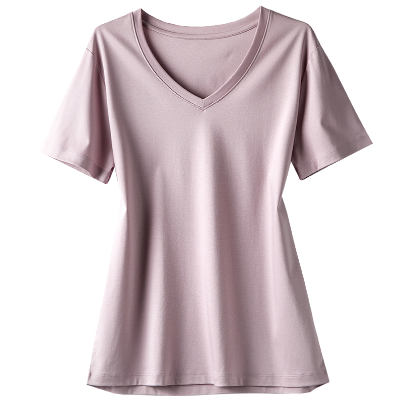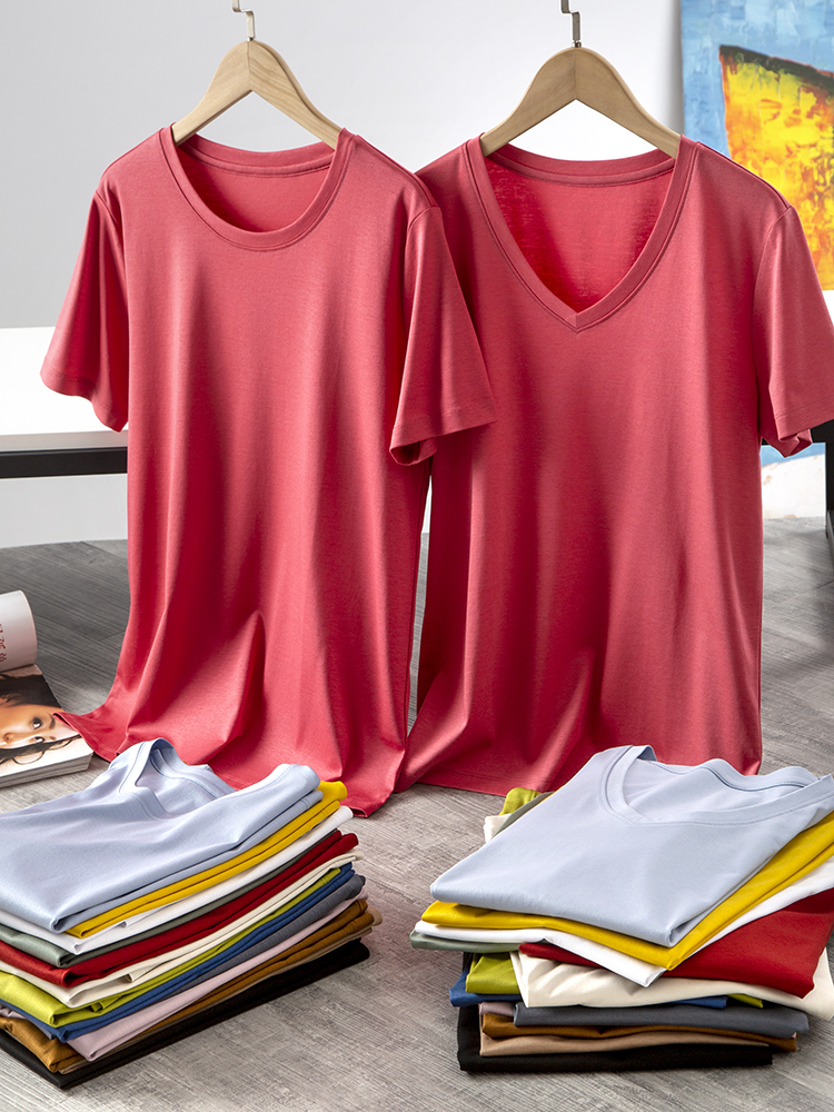 高品质大厂出含真丝丝光棉简约基础百搭显瘦圆领V领短袖T恤女多色