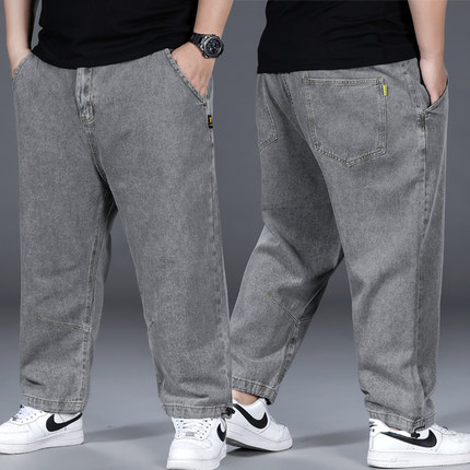 秋冬款九分牛仔裤男宽松直筒加肥加大码弹力胖子肥佬束脚9分裤子