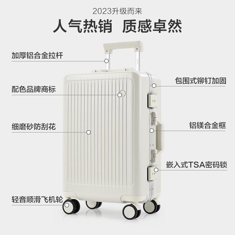 爱华仕行李箱铝框款结实耐用20寸静音万向轮拉杆箱女24旅行箱商务