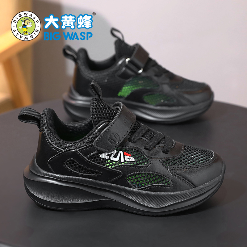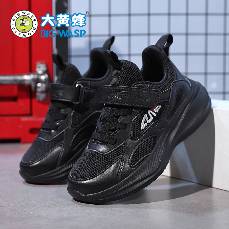 大黄蜂童鞋儿童黑色运动鞋春夏款中大童男童网面小黑鞋女童跑步鞋