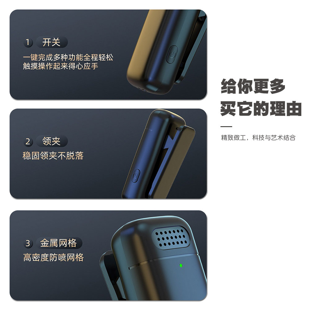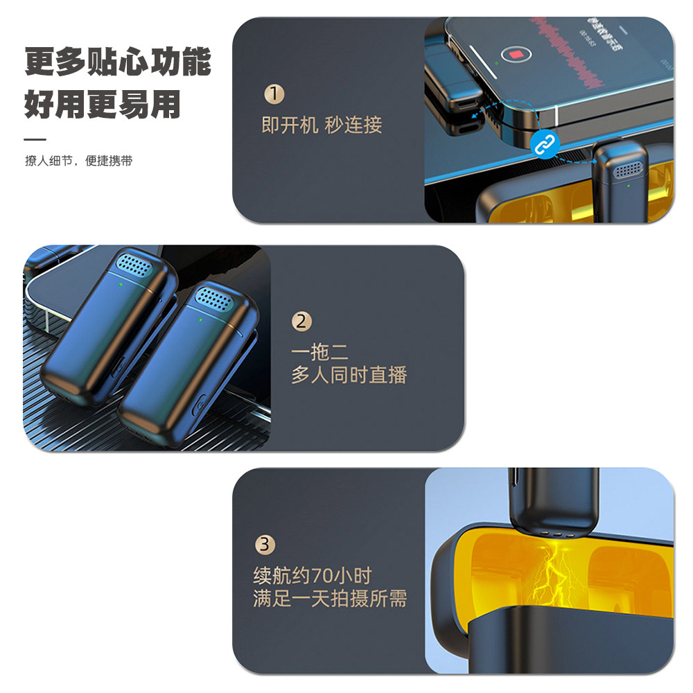 手机直播录音拍视频夹领无线麦克风收音麦领夹式一拖二主播专用